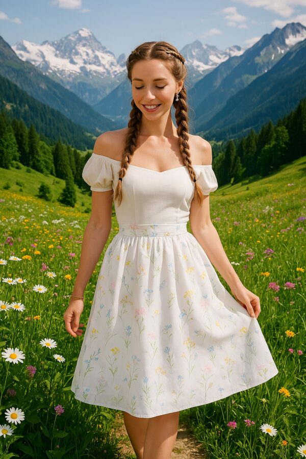 - Culoare: Designul floral este plasat pe un fundal care permite culorilor sa iasa in evidenta, asigurandu-se ca rochia atrage privirile.